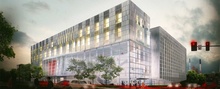 Note: as we wait for a brand new School of Music to be built, we are very comfortably settled in excellent new studios in the 2nd floor Old Cap Mall in downtown Iowa City (the ground floor is shops and restaurants; the 2nd floor is occupied by the University). The instrumental studios are roomy, completely acoustically isolated, and have a built-in digital recorder + playback, plus adjustable reverb (from dry practice room to something on the order of the Astrodome). The new studios (and recital hall, classrooms, breakroom, and chamber music rooms) are frankly a step up from the old building; we all be completely content here until the new state-of-the-art building is finished (we move in Fall 2016) which takes up a city block downtown at the corner of Clinton and Burlington Streets downtown (just a block away from where we are now). Below is the architect’s sketch of the exterior of the new school that will be built about a block away from where we are now. The outer walls are almost finished!